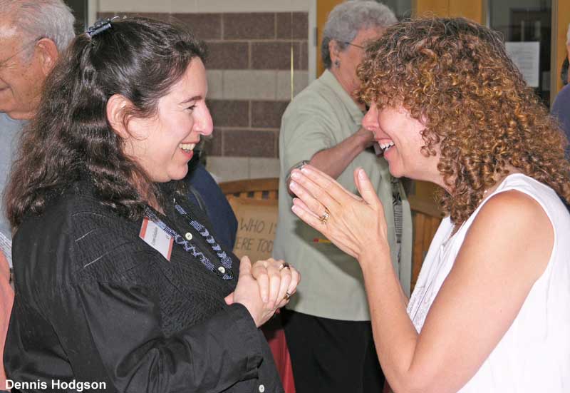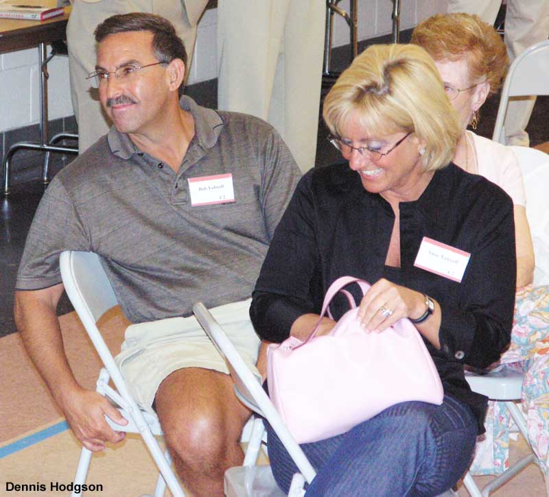 Slogging through mud in the 1950s when their neighborhood had just been carved out of the woods of Maggie Reed’s farm. Standing on license plates and roller skating down Cavalier Drive. Crawling through sewer pipes. Playing touch football and wiffleball in Cavalier Court. Sharing community-owned drill, ladder, lawnÂmower, and floor polisher. Fathers babysitting other kids as part of the “Sitters Club.” Former neighbors shared these and many other vivid memories at a 50th anniversary reunion and party held May 30 in the all-purpose room at Forest Knolls Elementary School. The event celebrated the unique history of the 44 brick ramblers on Cavalier Drive and Belton Road, which were built by a member-run cooperative. About 120 current and former neighbors attended the party, with some guests coming from as far away as Arizona, California, Washington State, Florida, Massachusetts and London, England. The photos — by Dennis Hodgson, son-in-law of the Gershensons (see original owner Leo Gershenson in red shirt) — tell it all!