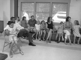 A few of the attendees enjoy the air conditioning inside the North Four Corners Rec Center.