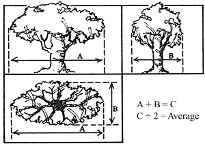 To evaluate the relative size of a tree, the girth (circumference) in inches and the height and crown spread