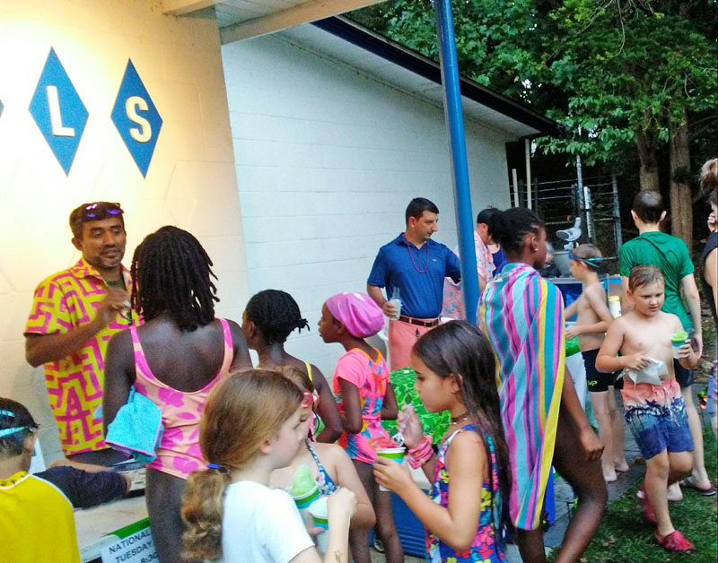 We hope everyone had a great time swimming, enjoying free snow cones, chatting with friends, meeting new neighbors, listening to the band, getting tattoos, mingling with police officers, and being outdoors on a beautiful, hot summer evening!