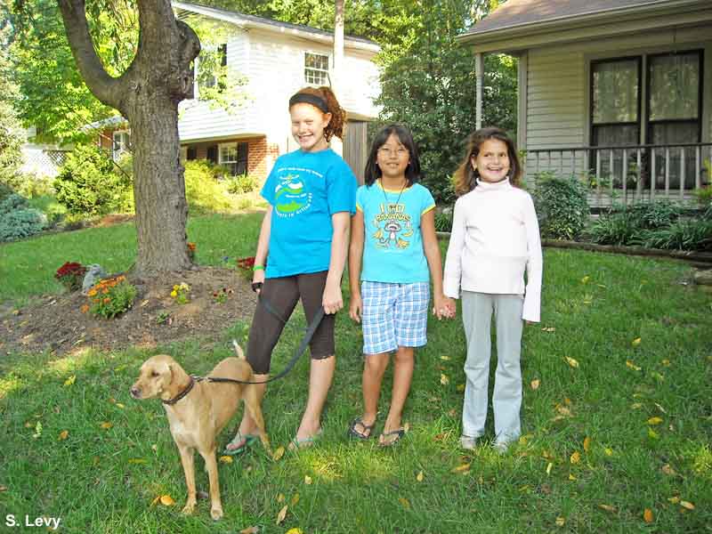 Emily and Alycia Levy (with neighbor Nancy, center) believe their dog, Chili, would win as “Cutest Pooch.”
