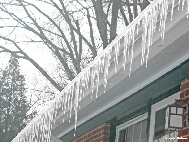 Some people think icicles are decorative (think of those Christmas lights intended to mimic icicles), but the downside is that they damage property by degrading the roof prematurely. Water may leak into the attic and house (which can rot wood) and gutters can come off the home under the weight of the ice.