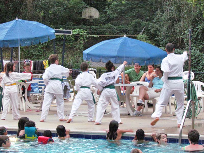 On Tuesday evening, 2 August, more than 100 Northwood-Four Corners residents participated in the National Night Out event in which thousands of communities around the country come together in the spirit of promoting neighborly communications. The idea is that when residents know each other, addressing crime and other community problems will be easier. Police and other local officials visit the National Night Out gatherings to talk with citizens about their concerns. It is also a chance to socialize and have some fun with neighbors. The NFCCA’s celebration was held at the Forest Knolls Community Pool. Music was generously provided by our own neighborhood talents — Tim Arnold, Jeff Pitot de La Beaujardiere, Joe Yanovitch, John Bodkin, Jimi Bunch, Mike Heney, and Mike Amitay. Walter Medrano loaned his snowcone machine. Linda Perlman, Michele Fromme, and Aleks Beltran helped with the potluck dinner/ice cream. Members of the Blue Wave Silver Spring Taekwondo Club — led by resident Greg Knoop — gave a demonstration of their martial arts skills. Along with members of the Montgomery County Police Department and the MNCPPC Park Police, State Senator Roger Manno and State Delegate Ben Kramer visited with residents. ■