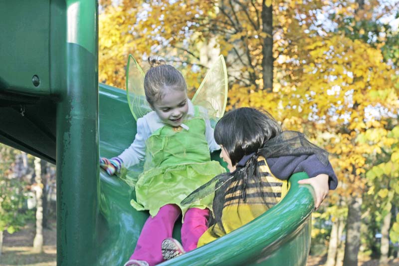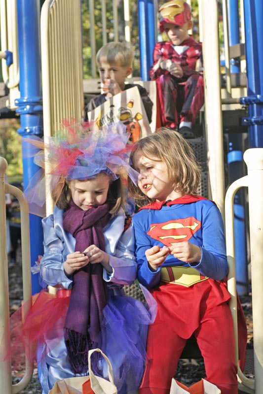 If you happened to be walking by North Four Corners Park on a sunny October afternoon, you would have spotted Peter Pan sliding down the slides, Mickey Mouse and Minnie Mouse running, fairies flitting, and many action figures zipping through the playground.