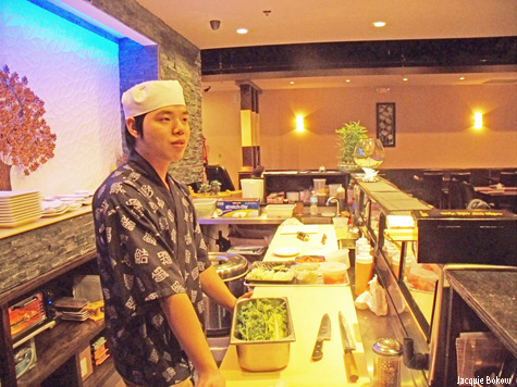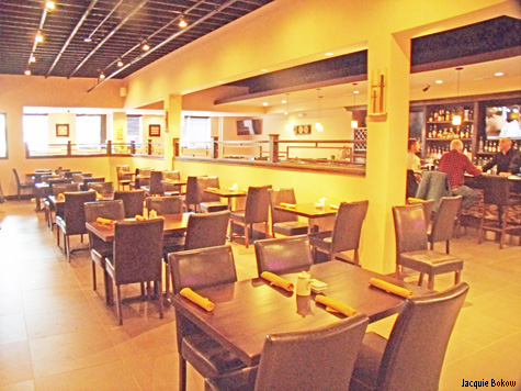 Besides a large sushi/sashimi and “roll” selection, diners also can order Chinese, Thai, and Japanese standards like General Tso’s and Kung Pao chicken, pad thai, and tempura. A few vegetarian selections are also available.