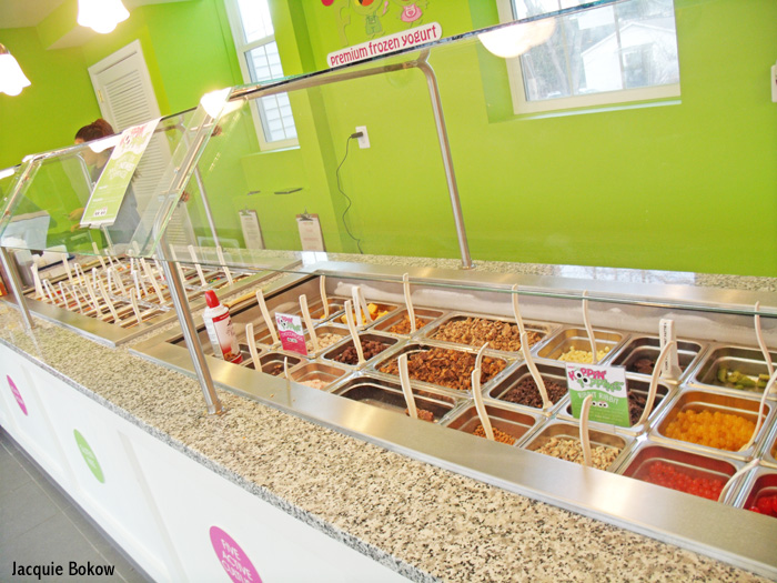 Forget your steaming mug of cocoa or mulled cider. For me, there is nothing more soothing in icy winter weather than a cup of frozen yogurt. And apparently I’m not the only one. Like many of this area’s frozen yogurt fans, I was waiting for Sweet Frog to quit stalling and get moving. But, because of plumbing issues, the premises looked like a building site for almost two years, a delay so protracted that I thought the project was abandoned. Then, on a late walk one frigid January evening, I noticed bright lights, new paint, and people sitting around gleaming white tables eating spoonfuls of frozen yogurt. Immediately, I made for the door.