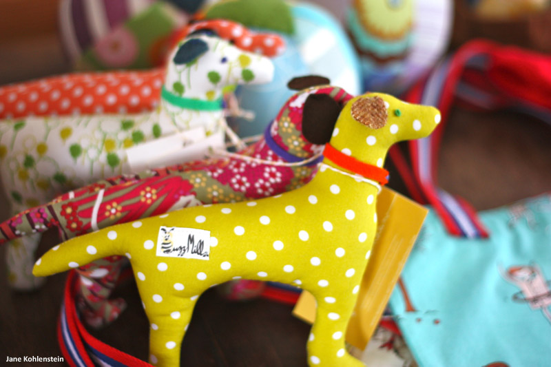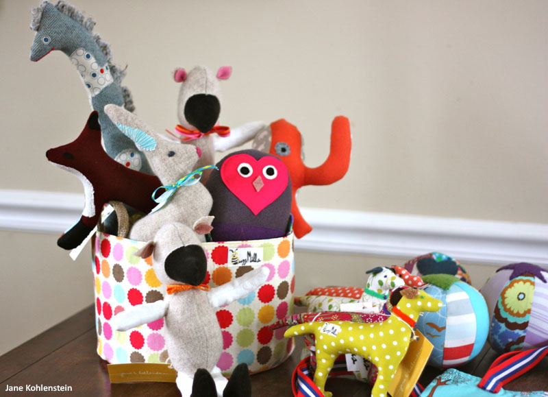 Kohlenstein sells a variety of appliquéd baby onesies, as well as wool stuffed dogs, giraffes, owls, elephants, foxes, and bunnies. She also fills custom orders, including toddler tote bags and market bags.