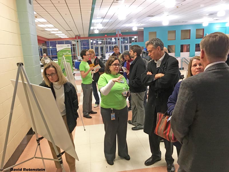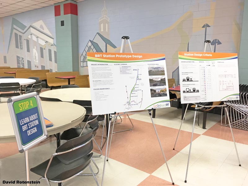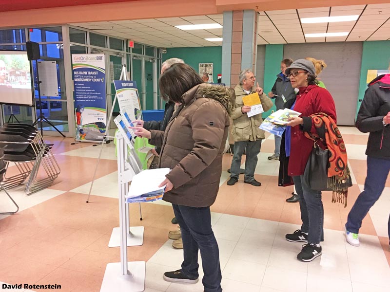 The Montgomery County Department of Transportation scheduled three open houses in March to allow residents in Silver Spring learn about the BRT project on Route 29/Colesville Road. The open house closest to our neighborhood was held in the Montgomery Blair High School cafeteria March 13.