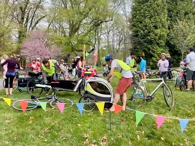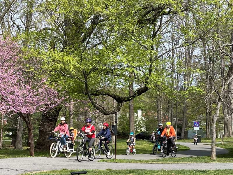 Thank you to all who joined the Northwood Bicycle Club for our first neighborhood bike ride, held on 23 April. More than 50 of our neighbors of all ages turned out for this great event. The ride started on the open lawn in North Four Corners Park and took a lap around the park before heading out as a group through our neighborhood’s streets. We concluded with another lap back at the park as we were cheered in by our neighbors.