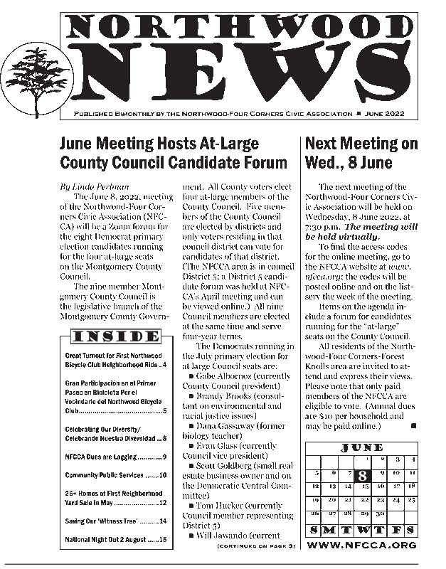Do you enjoy this newsletter? If you wish to continue having the Northwood News delivered to your home, then please pay your $10 annual civic association dues. If you have a local business, consider advertising in the Northwood News. You also can help by reaching out to encourage your neighbors, especially the newcomers, to join our civic association, the NFCCA.