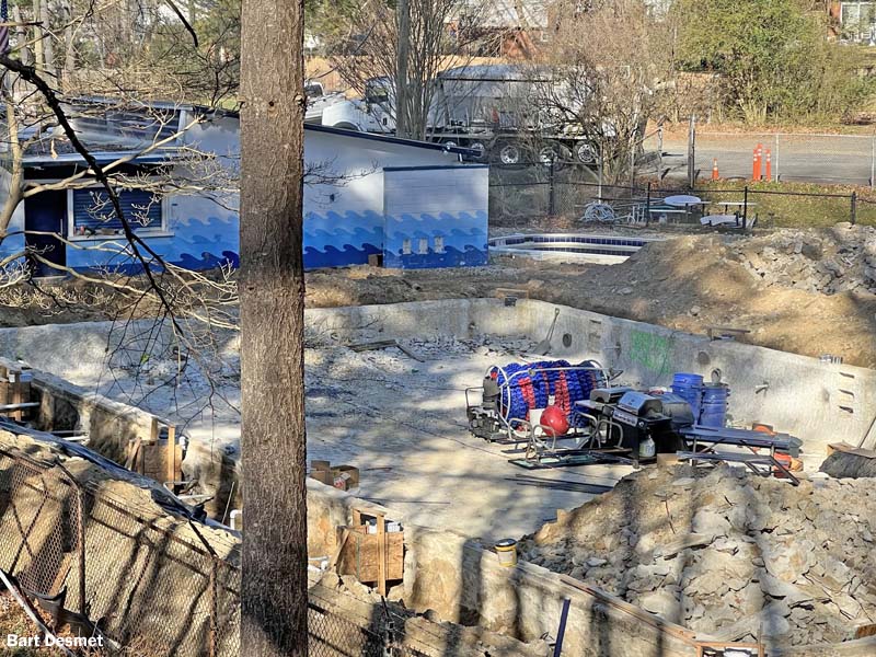If you have walked through Northwest Branch recently, you may have noticed that the Forest Knolls pool is currently undergoing construction. This major repair work, which is being done by Lighthouse Pools, is expected to be completed in April. While some repairs have been made over the years, the pool has not undergone this level of reconstruction since it was built more than 60 years ago. Forest Knolls Pool Board President Jen Ritchotte stated that “the current work was necessary to keep the pool functional.”
