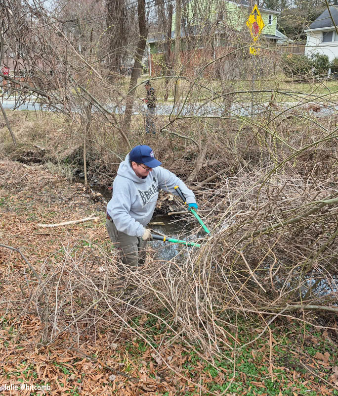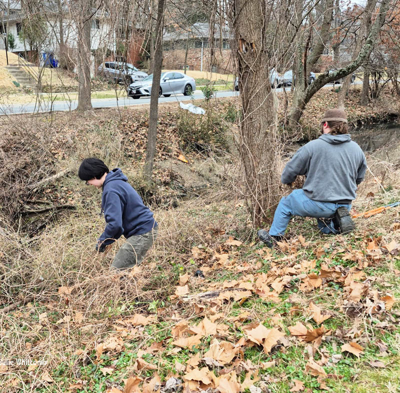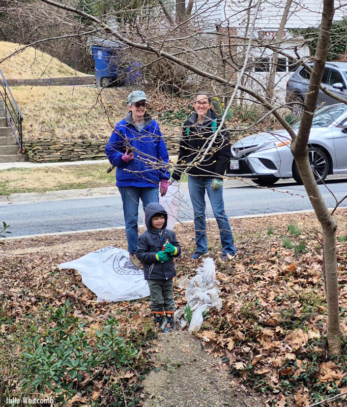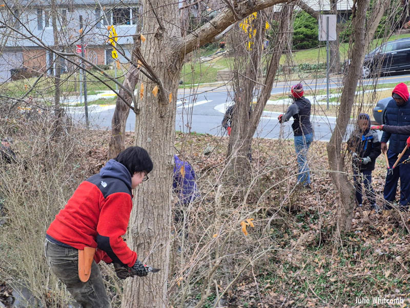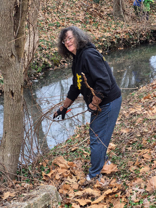 Roughly 45 people showed up on 15 March to cut back the invasive vines strangling trees along the culvert on Lockridge Drive. Here are just a few of those heroic neighbors! ■