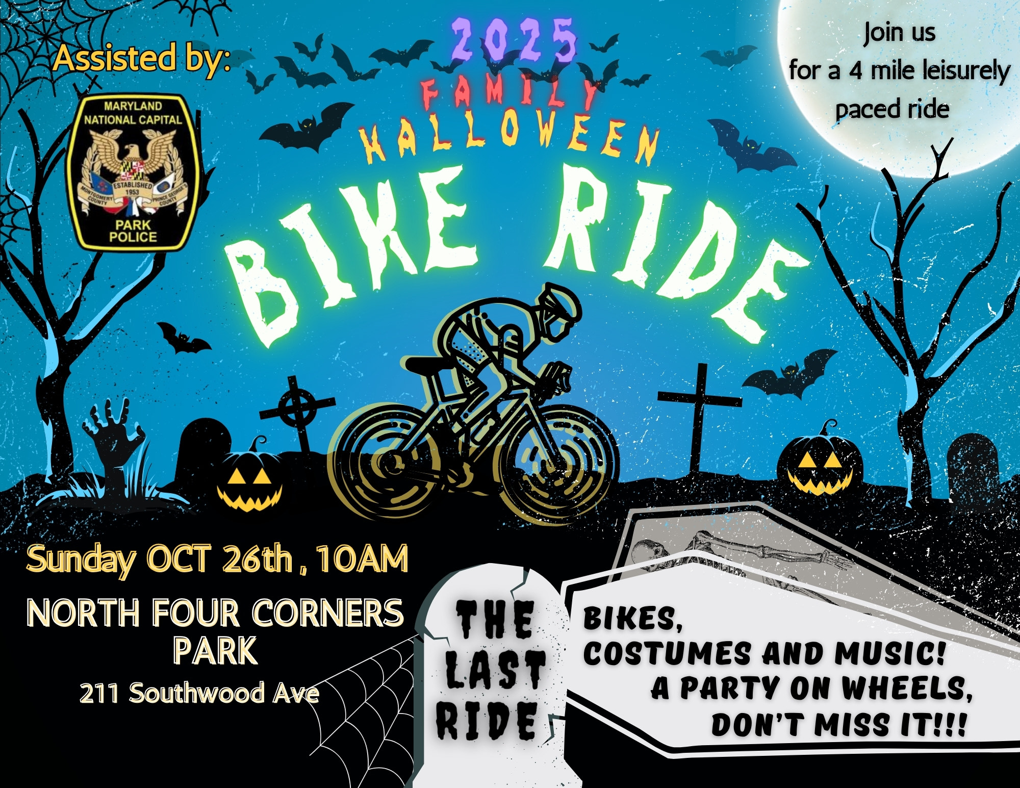 Our third and last Family Bike Ride of the year is almost here, and it’s our most fun ride so wear your Halloween costume and bring your trusted bicycle!! The HalloWHEEL Bike Ride is Sunday, 26 October, at 10 a.m.