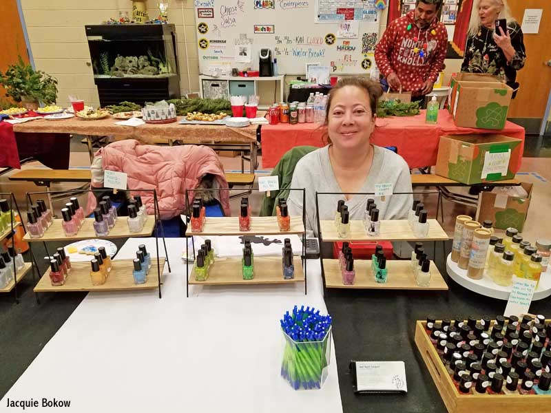 NFCCA carolers opened the night with a round of seasonal songs and, later, the McKim Family Singers performed a nice set featuring both vocals and instruments. Six neighborhood vendors showcased beautiful displays of products including paintings, cards, jewelry, nail polish, wreaths, and collectibles, that were all available for purchase.