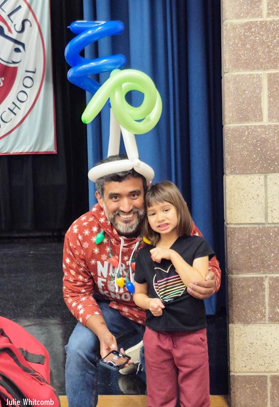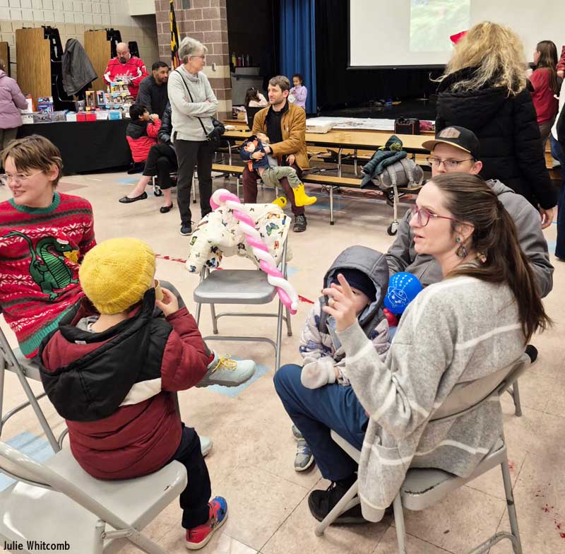 Families enjoyed balloon candy canes, creatures, and funny hats as a balloon artist made his NFCCA debut. This came with the occasional “pop!” that startled a few of us from time to time, but everything worked out okay. Games and activities kept children busy throughout the evening.